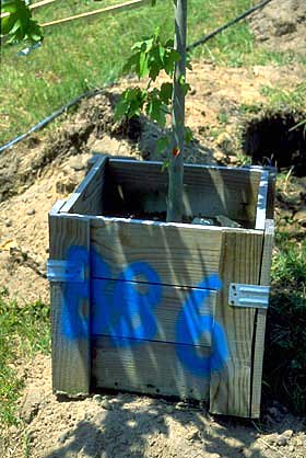 7) Caja de madera o contenedor de metal: no hay datos que sugieran que los árboles cultivados en cajas de madera o contenedores de metal se trasplanten de manera diferente a los de otros contenedores.