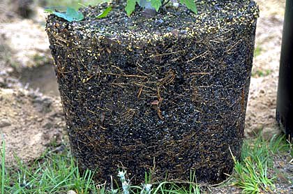 . En varias semanas a un mes o dos, dependiendo de la estación del año y la especie, presenta pequeñas raíces regeneradas crecerán parcialmente a través de la tela y la mantendrán en el exterior del cepellón.arpillera natural atada con alambre o cuerda. Esto permitirá que el árbol se mantenga en el vivero durante muchos meses y luego se levante sin perder la tierra del cepellón. La arpillera natural puede haberse descompuesto, pero la manga en el exterior delcepellón estará intacta y mantendrá la tierra en el cepellón de raíz. Por supuesto, la manga sintética en el exterior del cepellón debe ser retirada del cepellón y removida en el sitio de plantación.