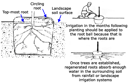 Las consecuencias de las deformaciones de las raíces pueden no ser evidentes hasta que los árboles sean más viejos y estén bien establecidos en el paisaje. Los árboles con raíces circulares intactas no deben plantarse.