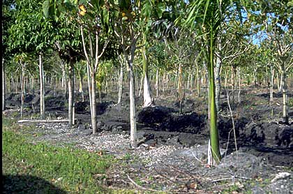 Once árboles de control no recibieron fertilizantes. Los árboles no fueron podados de raíz después de ser trasplantados. 5 N- 0 P2O5- 0 K2O). El fertilizante se aplicó en la superficie a 29.3 g N / m2 (6 lbs N / 1000 pies2) / año en un área acolchada de 1.8 x 1.8 m (6 x 6 pies) alrededor de cada árbol hasta mayo de 1989 cuando el área de aplicación se incrementó a 3.7 x 3.7 m (12 x 12 pies). Debido a que la tasa se mantuvo igual a 29.3 g N / m2 (6 lbs N / 1000 pies2) / año, la cantidad de fertilizante aplicado por árbol aumentó cuatro veces en mayo de 1989 debido al aumento de cuatro veces en el área de aplicación.
