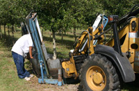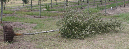 Muchos viveros que cultivan raíces en poda de vivero ahora lo hacen con una pala de árbol. Muchos de estos productores hunden las cuchillas aproximadamente a la mitad del suelo, cortando esencialmente la mitad del sistema de raíces. Más adelante en el año, la otra mitad se corta con la pala.Nuestro más reciente (no publicado aún) mostró que para el roble vivo, la época del año en que se podaban los árboles no afectaba el crecimiento en el vivero ni el estrés hídrico después de la excavación.