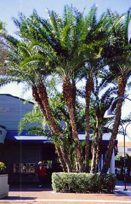 Las palmeras son una parte dominante del paisaje del sur de Florida y añaden una imagen tropical a esta parte del estado. Las palmeras varían mucho en tamaño, desde aquellas que maduran a una altura de menos de 3 pies con tallos de grosor de lápiz hasta monstruos de más de 100 pies de altura con troncos que se acercan a 3 pies de diámetro. Las palmeras pueden ser de un solo tallo o tener múltiples troncos (palmas agrupadas). Las palmas de un solo tallo se adaptan mejor a los espacios pequeños que la mayoría de los árboles de hoja ancha porque no se ramifican. Por otro lado, algunas palmeras aglomeradas pueden volverse demasiado grandes para los paisajes residenciales típicos. Las palmeras pueden tener hojas en forma de pluma (pinnadas) que imparten una textura relativamente fina, u hojas en forma de abanico (palmeadas o costa palmadas) que tienen una textura muy audaz. Algunos tienen hojas bastante rígidas, mientras que otras tienen portes llorosos que proporcionan un interés adicional en el paisaje.