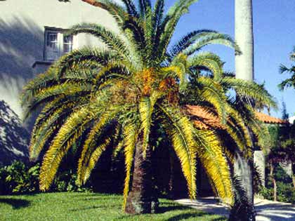 Si hay un número excesivo de frondas amarillas más antiguas, determine la causa antes de la poda. Podría haber un grave problema de nutrientes causado por una deficiencia de potasio o magnesio que podría empeorar si la palmera se podase fertiliza con alto contenido de nitrógeno o el tipo incorrecto de fertilizante.
