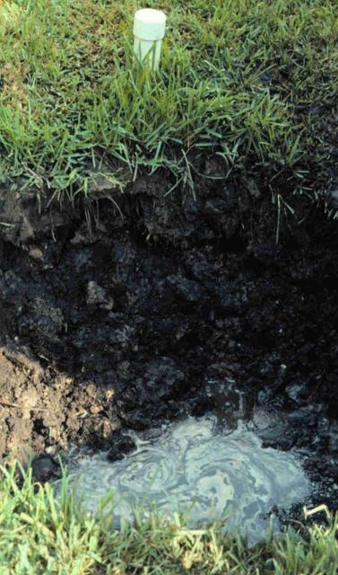 Las palmeras no deben plantarse en sitios con niveles freáticos altos o drenaje deficiente (Figura 8). Dichos sitios se pueden plantar si se utilizan montículos o bermas para construir el área a plantar. Las cacerolas duras de arcilla, donde ocurren, deben perforarse para mejorar el drenaje. Los agujeros de plantación deben tener aproximadamente el doble del diámetro del cepellón para facilitar el relleno, pero no es necesario que sea más profundo que el cepellón.