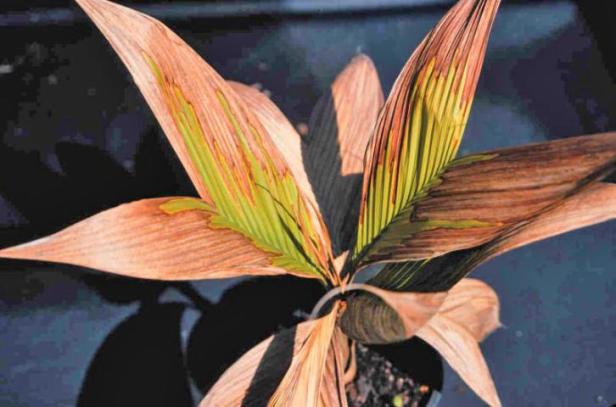 Las palmeras en invernaderos con calefacción generalmente están a salvo del daño por congelación a menos que los calentadores fallen. En casas de sombra abiertas o en el vivero de contenedores a pleno sol, se necesita protección especial.