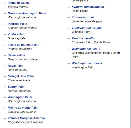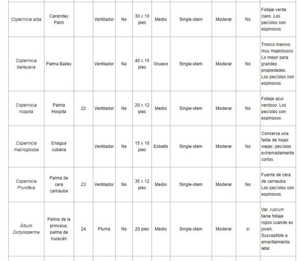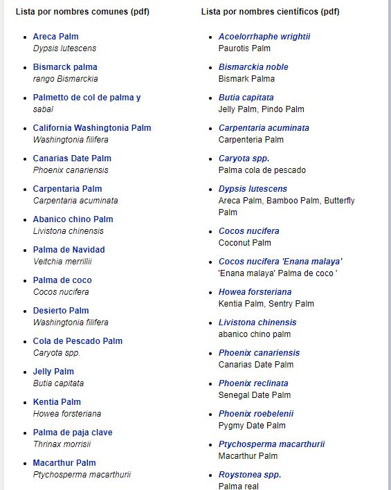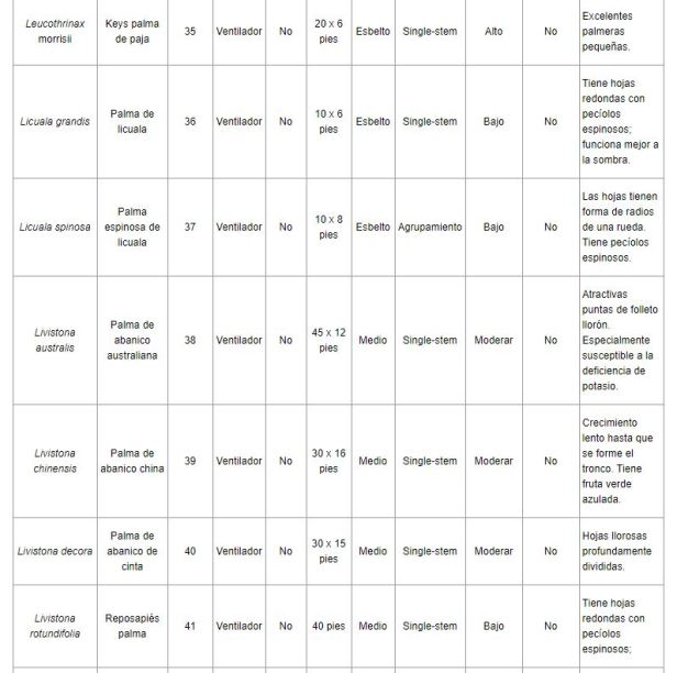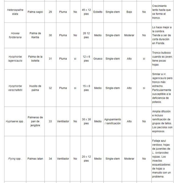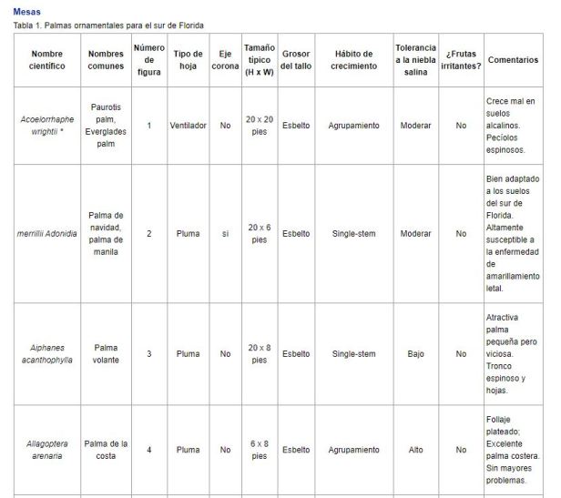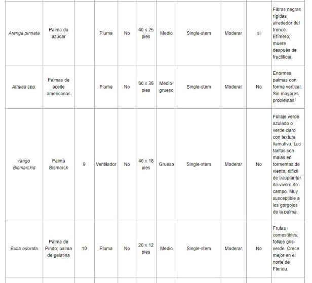 Relacion de palmeras que viven en Florida