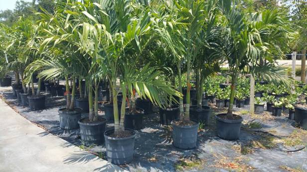 Cultivado en contenedores en el sol: las palmeras en contenedores producidas a pleno sol se utilizarán como revestimientos para la producción en el campo o en plantas de paisaje (al por menor o al por mayor).