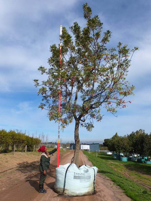 Muchas otras opciones están disponibles para nuestros hermosos parques. También mira lo siguiente: Trichilia emetica; Platanus acerifolia; Quercus suber; Quercus nigra; Péndulos de Searsia; Vachellia xanthophloea; Pinus pinea; Nuxia floribunda; Afrocarpus falcatus; Combretum erythrophyllum; Ficus natalensis; Erythrina caffra; Erythrina lysistemon; Péndulo de abedul; Aloidendron barberaea; Quercus se sonroja; Taxodium distichum; Vachellia sieberiana; Syzygium cordatum; Ekebergia capensis; Searsia lancea; Jacaranda mimosifolia