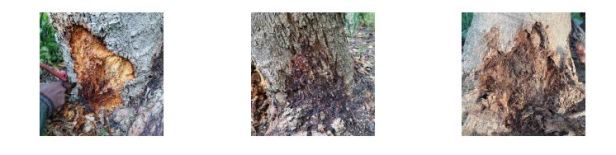 Este tipo de perforador generalmente está presente cuando el tronco está demasiado húmedo. Se alimenta del cambium exterior de la corteza, lo que hace que la corteza se pudra.