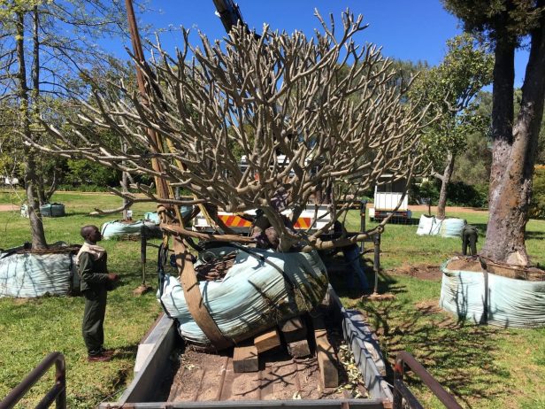 El equipo especializado de Trees South Africa reubica, rescata y rehabilita ejemplares grandes de árboles ; Lo más importante, asegurándose de que florezcan en su vivero y luego en su jardín.