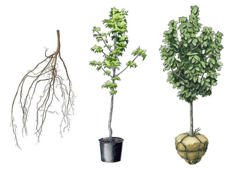 Las plantas en esta sección deben especificarse por la forma en que se comercializan: cultivo en contenedores, raíz desnuda o en macetas de campo (consulte la Sección