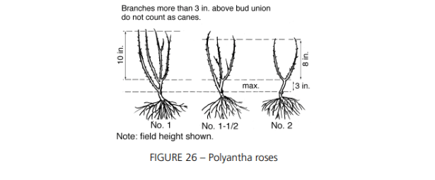 GRADO. Un grado es una unidad de clasificación basada en un tamaño o rango de tamaño específico, número de tallos o bastones, etc. Para los propósitos de ANSI Z60.1, el grado no pretende describir la calidad, excepto para Roses.