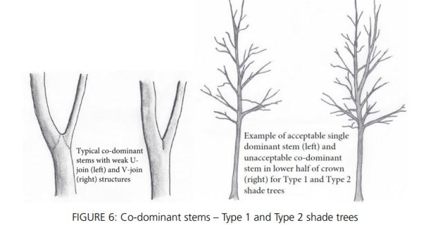 En el caso de que las especificaciones para un árbol de forma de grupo no incluyan el número mínimo de tallos (troncos), un árbol de tres tallos deberá cumplir con la especificación.