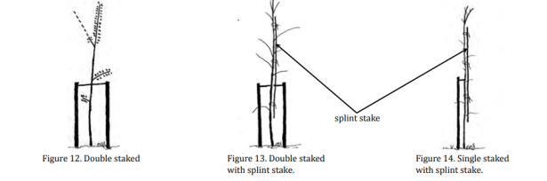 La corona no debe mostrar signos de estrés por humedad como lo indican las hojas marchitas, marchitas o muertas o la muerte de las ramas. El calibrador del tronco (diámetro) y el cono (Figura 6) serán suficientes para que el árbol permanezca vertical sin una estaca.