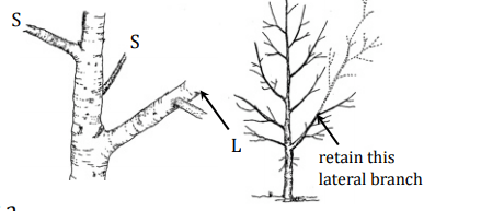 Las ramas pequeñas (Figura 17, S) no necesitan poda porque no competirán con el líder.