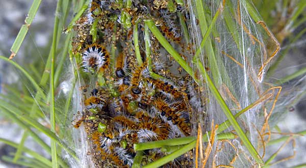 El Barrenador del pino. (Ips acuminatus) otra plaga característica de la familia, a la que tenemos que añadir la tan conocida Procesionaria del pino (Thaumetopoea pityocampa) Lepidoptero defoliador.