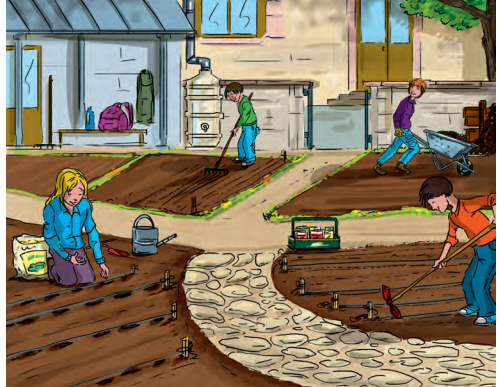 - • El municipio (servicio de espacios verdes y servicio de asuntos escolares): es importante limitar las restricciones y las operaciones pesadas (cambio de terreno, posibles movimientos de tierra, mejora del terreno, instalación de un punto de agua, etc.). ) obteniendo ayuda. Los servicios municipales dedicados al mantenimiento de espacios verdes y el florecimiento de la comuna son los apoyos más efectivos, su participación es a menudo una garantía de éxito. Además, pueden mantener el jardín durante las vacaciones escolares de verano.