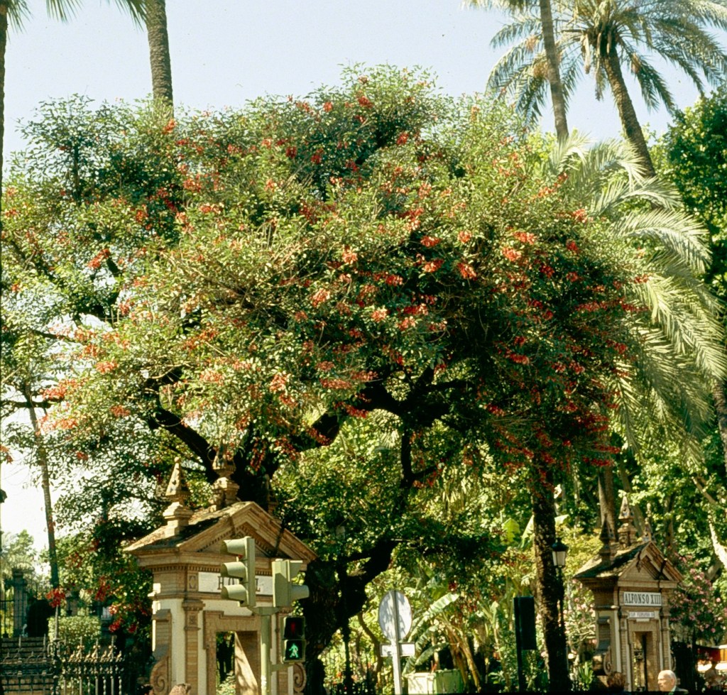 Es árbol semi persistente en nuestro clima, teme las heladas razón por la cual solo ha sido plantado hasta hace poco aislada en lugares protegidos, sin embargo ante los inviernos bonancibles de los últimos años los hemos visto plantadas con más difusión en parques e incluso como árbol urbano en algunas ciudades del Sur como consecuencia del cambio climático que a pesar de algunos incrédulos esta alterando nuestros ciclos climáticos. Se cultiva como ornamental en zonas templadas cálidas y tropicales de todo el mundo.