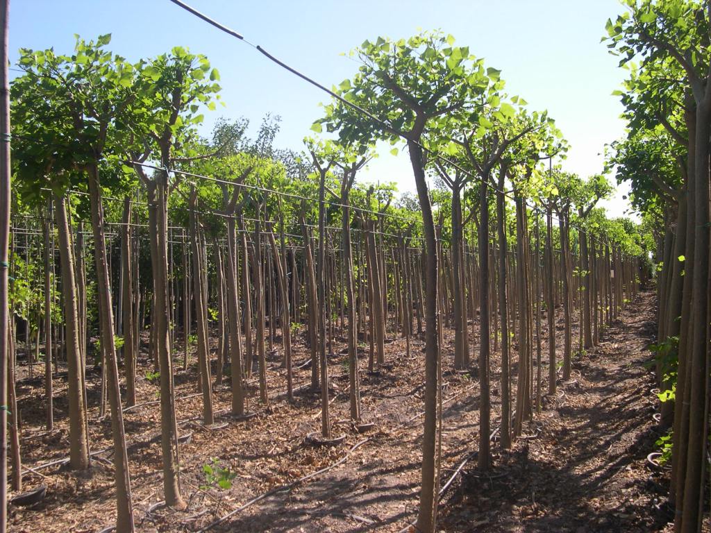 Es necesario entutorarlas para conseguir troncos rectos, eliminando los brotes que salen del tronco hasta que no alcancen la altura deseada como árbol.