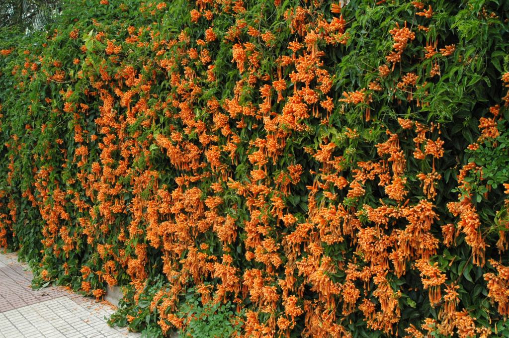 Pyrostegia venusta cubriendo una valla de cerramiento
