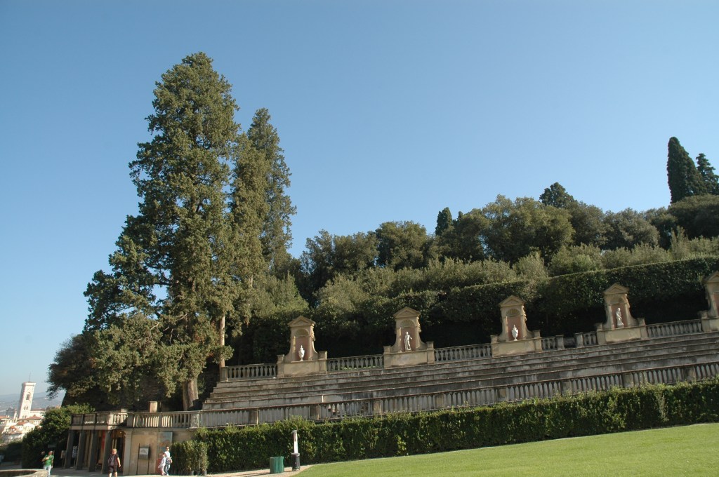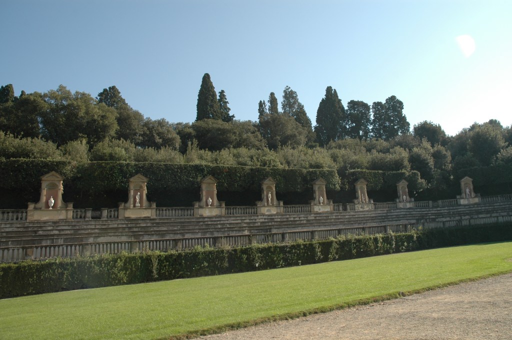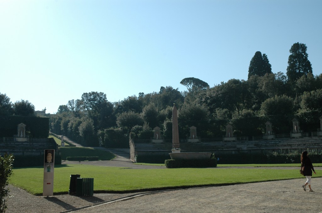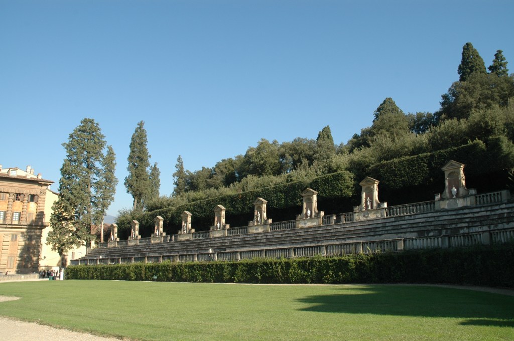 En 1631, Giulio Parigi transformó el anfiteatro de la arquitectura de jardines en arquitectura de mampostería con la instalación, en la primera mitad del siglo XVIII, del obelisco egipcio originario de Luxor, pero más recientemente de las colecciones romanas de los Medici y la cuenca de los baños de Caracalla en Roma.