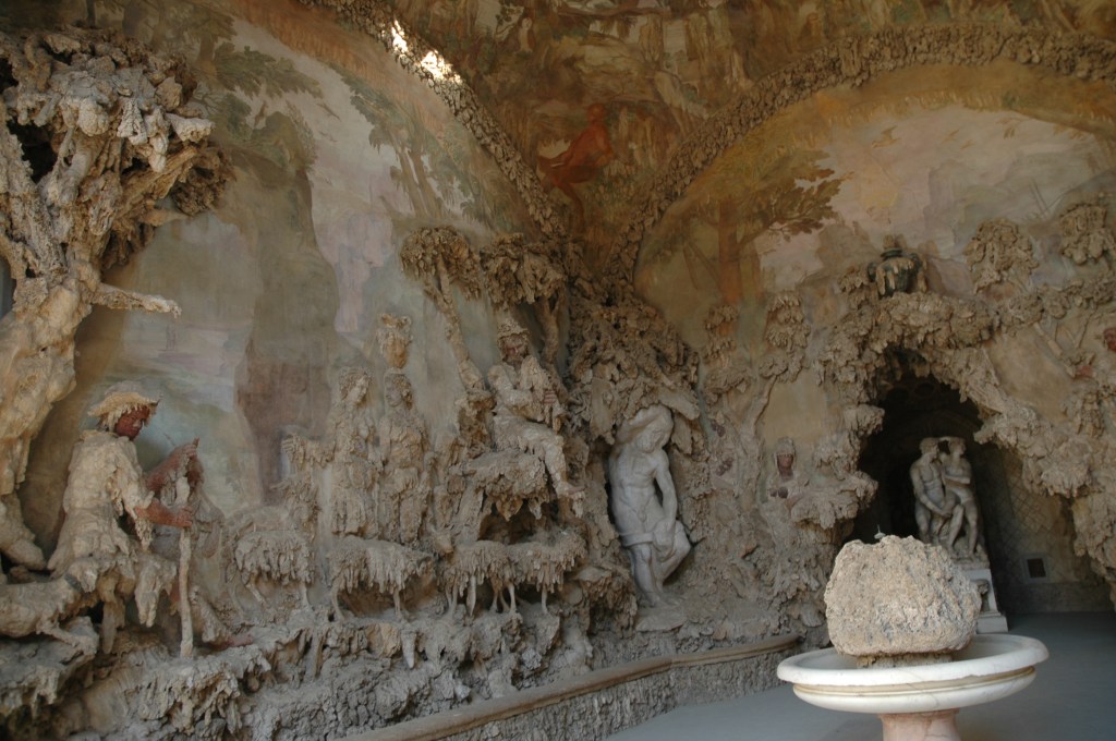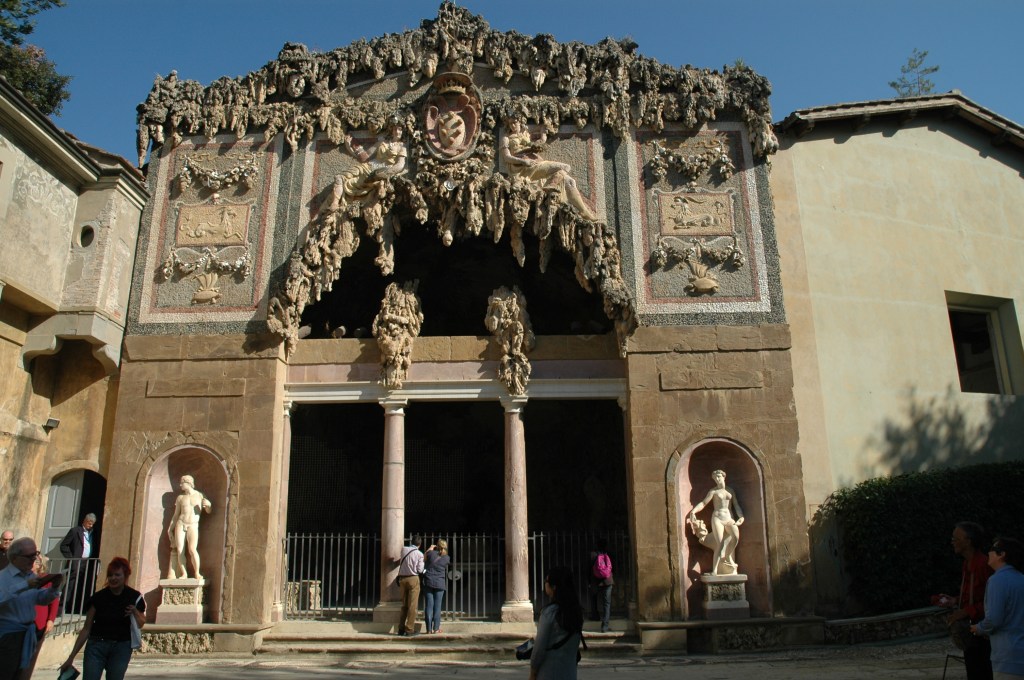 La Gruta del Madama, realizada entre 1553 y 1555 para recrear un entorno natural poblado por misteriosos seres de piedra y animales, fue una de las primeras construcciones importantes. Entre 1583 y 1593, Bernardo Buontalenti construyó una gran gruta, conocida como Gruta de Buontalenti, en lugar de un vivero diseñado por Vasari. Esta espectacular gruta fue construida con estalactitas de hormigón de piedra caliza, conchas y relieves de terracota, con agua corriendo por las paredes proporcionando vivacidad y color.