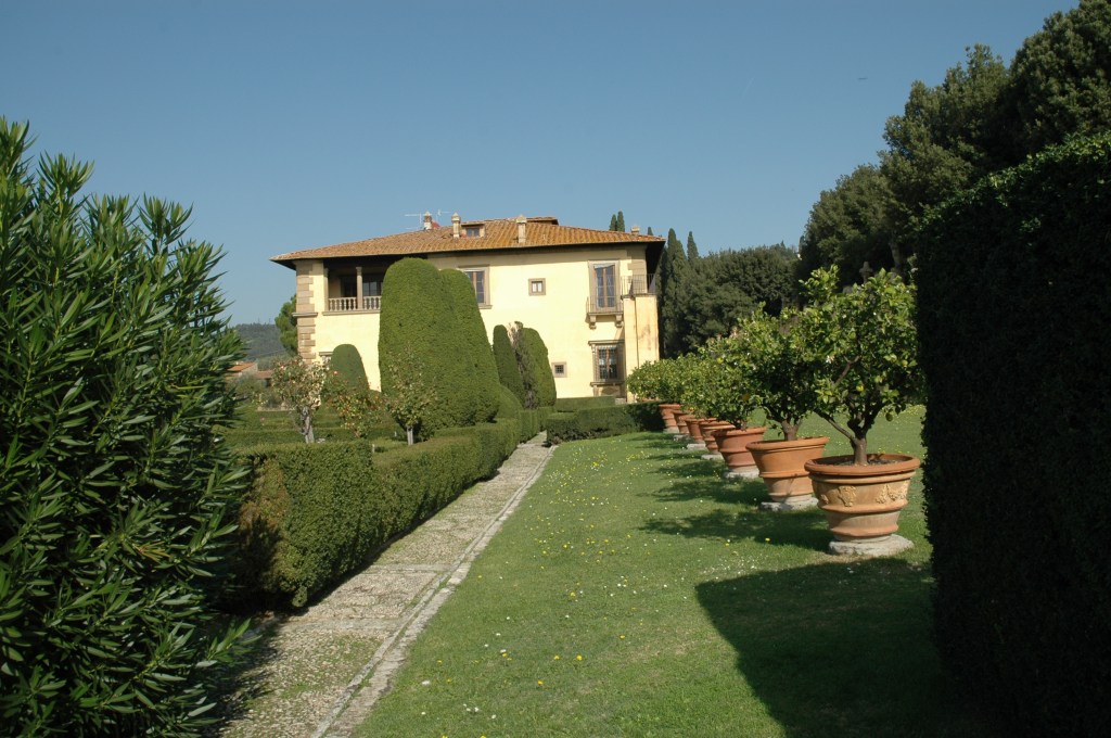 En un plan contemporáneo de la finca (c.1725-30) y en los grabados de Giuseppe Zocchi (c.1744) podemos ver claramente los elementos que aún caracterizan a la villa: los dos ejes longitudinales, orientados de norte a sur, el entrada impulsada por hileras de cipreses y la larga avenida del jardín, la bolera verde, el eje transversal, que corre de este a oeste, a través del gabinete rústico, flanqueado por bosques de encinas, la terraza superior con su “ Orangerie “ ( casa con función de invernadero para guardar naranjos y limoneros en invierno ) y, en el extremo sur, el sofisticado parterre francés con aviario y «garenna» o «isla de los conejos» y un teatro verde al fondo de la perspectiva..