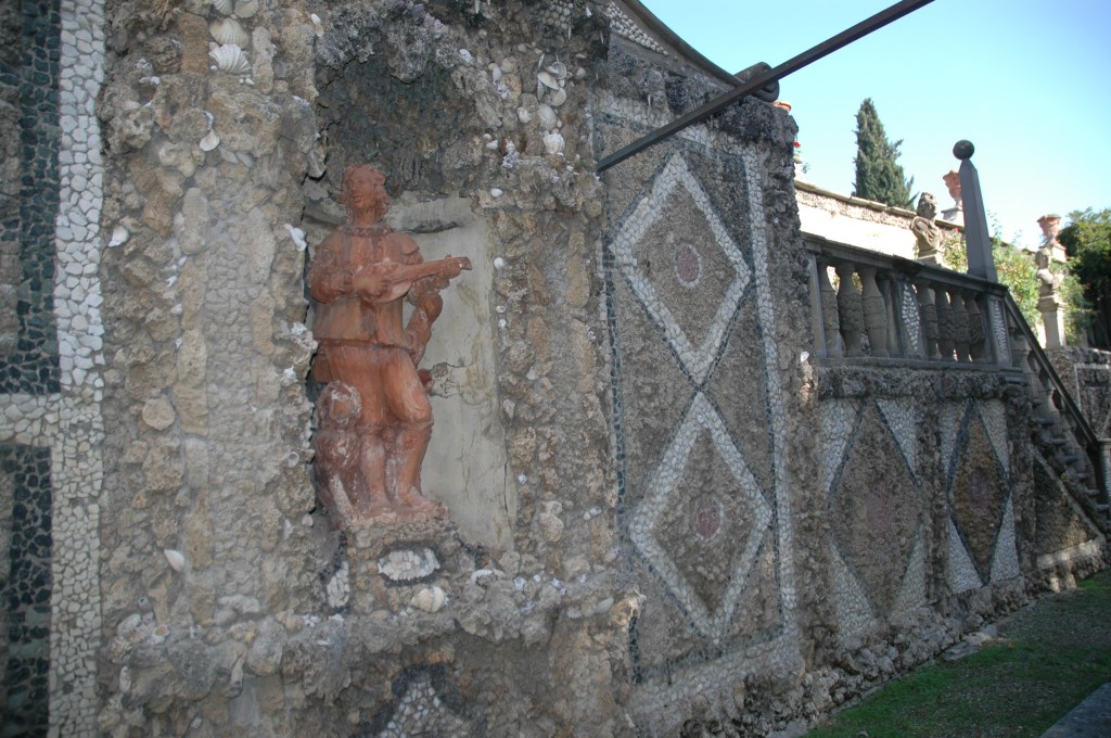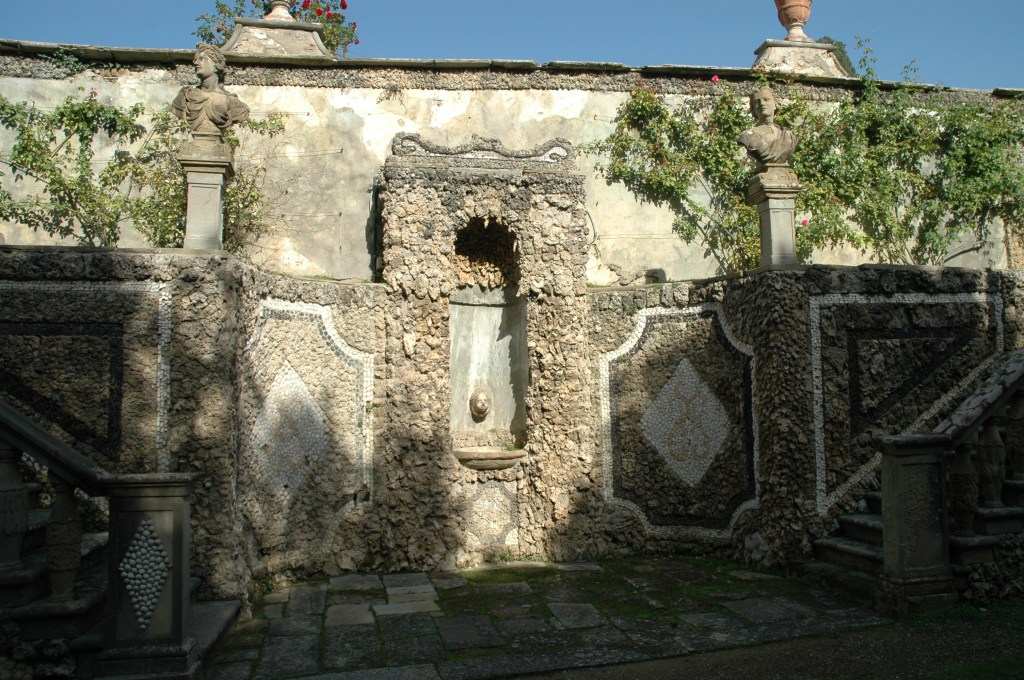 Adornando las grutas y paredes de los jardines hay estatuas, bustos de las cuatro estaciones y urnas.