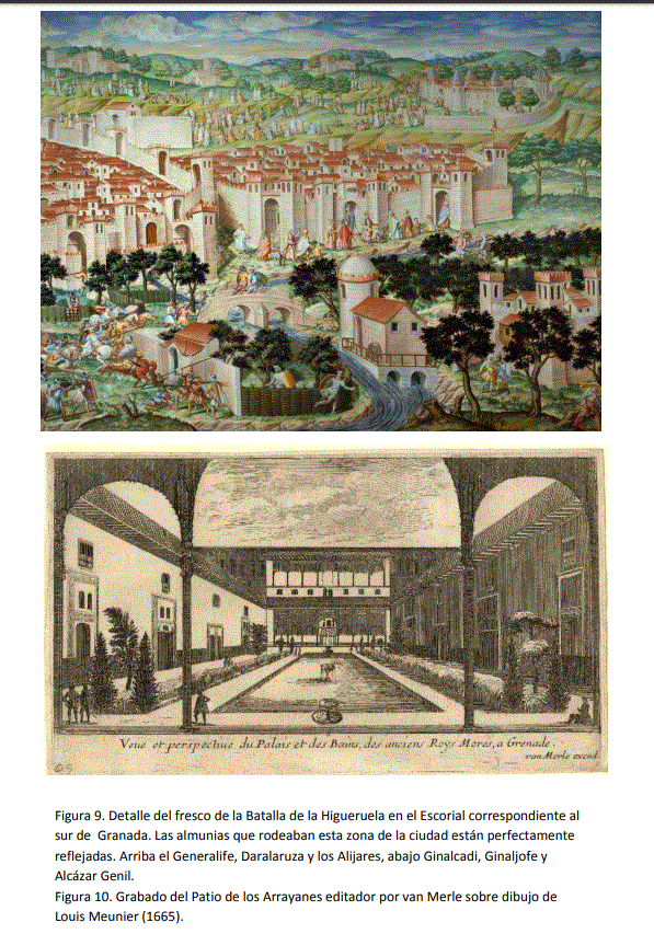 Del fresco de la Higueruela puede deducirse la relación de la ciudad con su entorno cultivado, pero además bastantes almunias y huertas concretas, el Generalife, Ginalcadi, Ginaljofe, Alcázar Genil y el ya citado de los Alijares. Este último es quizás el detalle gráfico de época medieval más claro que tenemos de una finca nazarí en su conjunto.