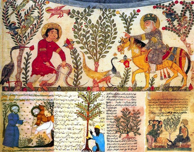 El manuscrito de la Historia de Bayard y Riyad es el único con miniaturas que nos ha llegado de al-Ándalus, muchas de las cuales son de jardines. Se conserva en la Biblioteca del Vaticano y es un raro texto que se piensa pudo ser escrito en el siglo XIII en la Sevilla almohade, aunque no se descarta que pudiera ser magrebí 2.