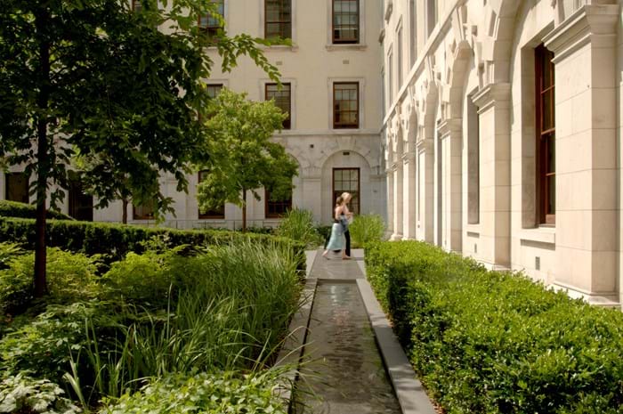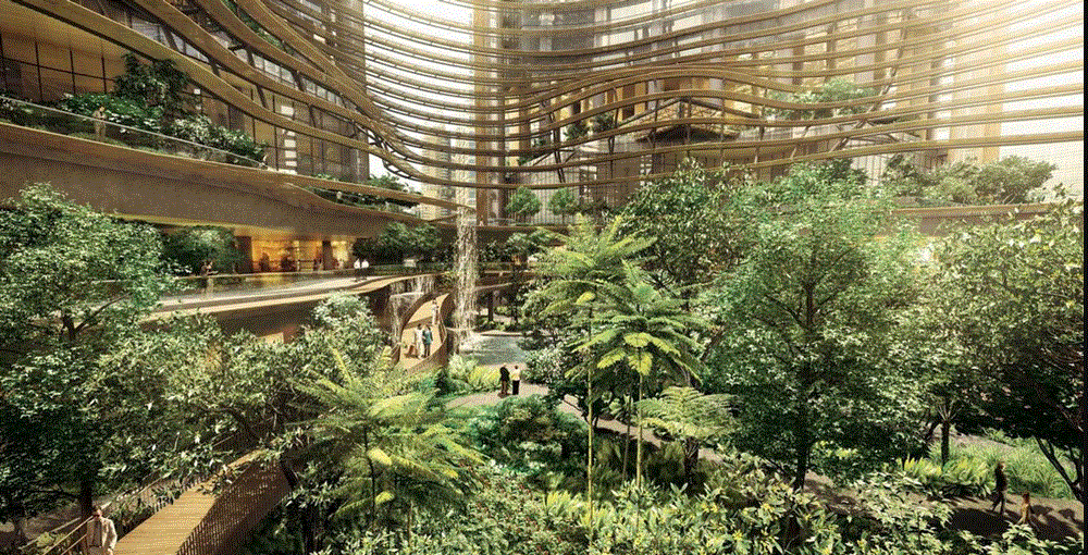 Las personas pueden pasar de sistemas de tránsito rápido a centros comerciales, oficinas y hogares sin tener que pisar calles y paisajes. Sin embargo, donde quiera que uno camina, la vegetación está en todas partes y proporciona una pantalla a los entornos urbanos difíciles.