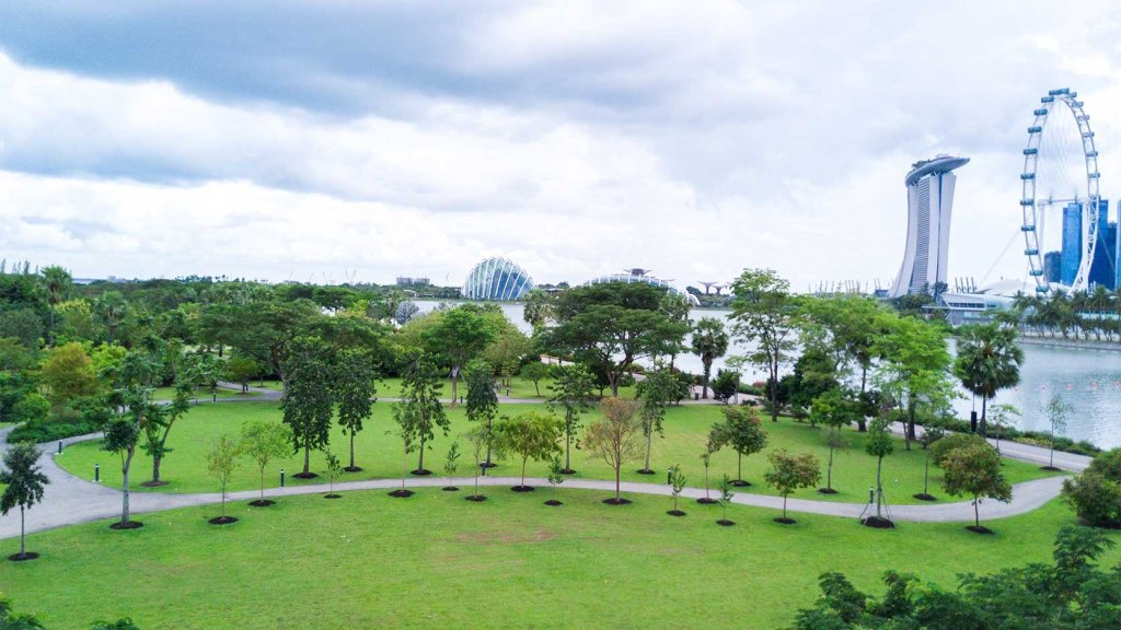 Las plantas tienen formas y colores gráficos increíbles. Nuestro parque se encuentra en la siguiente etapa de la expansión de las ciudades en espera de la creación de una ruta subterránea de carreteras y ferrocarriles con fantásticas vistas del distrito central de negocios a través de la bahía. El sitio tiene más de 2 km de largo, una distancia considerable para que las personas caminen en el calor tropical. Dividimos su longitud entre cinco entradas de características de agua y espacios para eventos.
