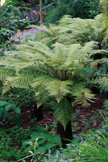 Una de las colecciones de plantas más sorprendentes en los jardines de La Mortella está compuesta por helechos arbóreos. Esta colección comenzó casi por accidente, cuando William Walton, durante un viaje a Australia, envió dos troncos de helechos a Susana en una caja de zapatos. Cuando Russell Page vio cómo estos helechos prosperaron en el clima de Ischia, le sugirió a Susana que cultivara tantos como pudiera.
