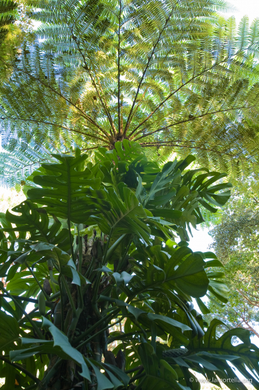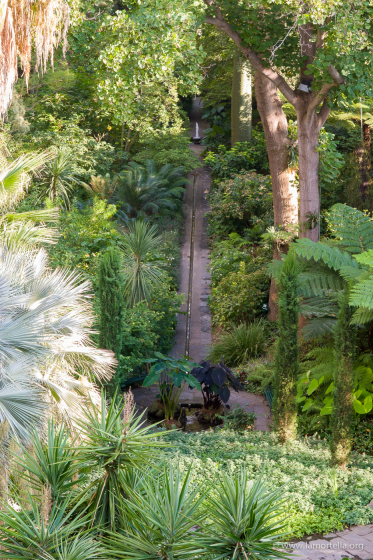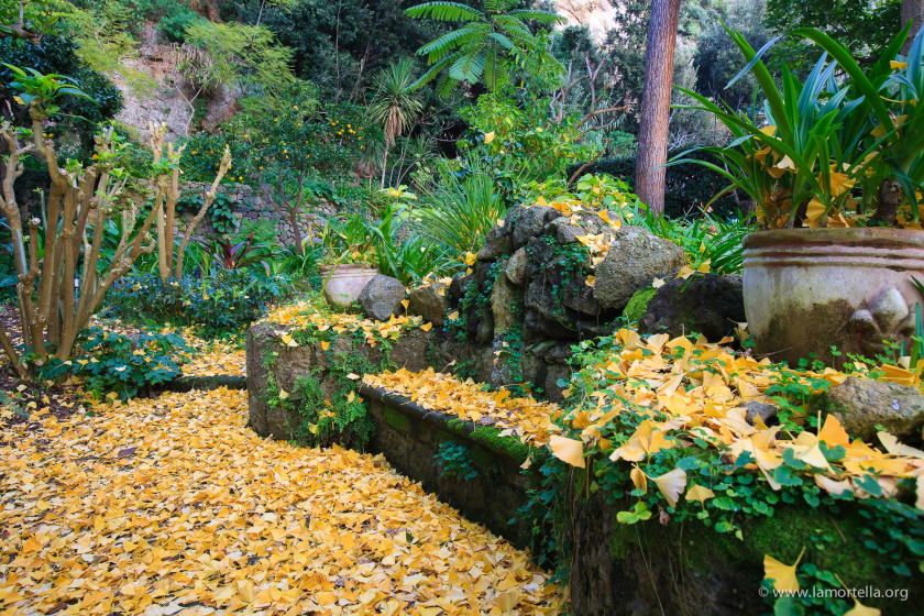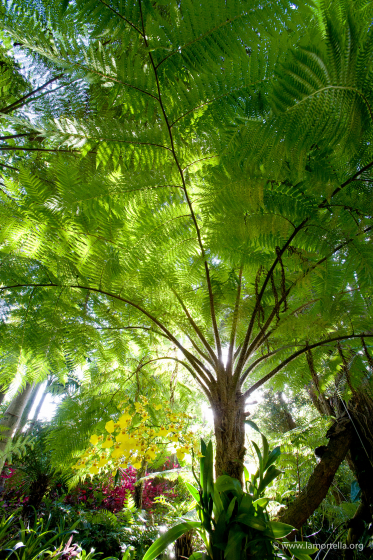 El valle está alfombrado por Woodwardia radicans, un helecho terrestre típico de las islas mediterráneas, capaz de extenderse de una terraza a otra en el jardín porque cuando las frondas largas y arqueadas tocan el suelo emiten raíces de las que nace una nueva planta joven.