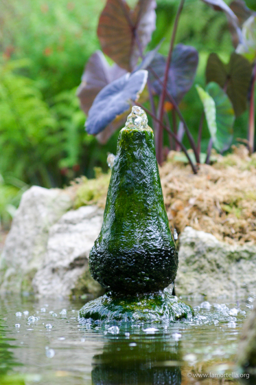 La primera fuente encontrada a lo largo del valle fue diseñada por Russell Page y construida cuando la parte principal del jardín ya estaba instalada. Se compone de una cuenca redonda, con un pico central, rodeado de cuatro parterres semicirculares, plantados con plantas acuáticas.