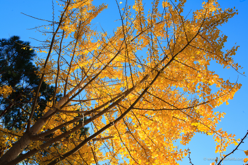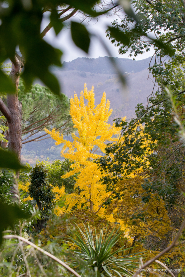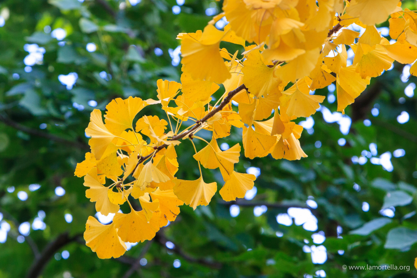 En la desembocadura del valle, entre los primeros árboles, encontramos Ginkgo Biloba, un pariente lejano de las coníferas, del que hasta el siglo XVIII solo se conocían especímenes fósiles (200 millones de años), y que se encontró en China en el siglo XVIII. El descubrimiento de ese «fósil viviente» creó tal revuelo que Johann Wolfgang von Goethe, el gran poeta, científico y filósofo, le dedicó estos versos: