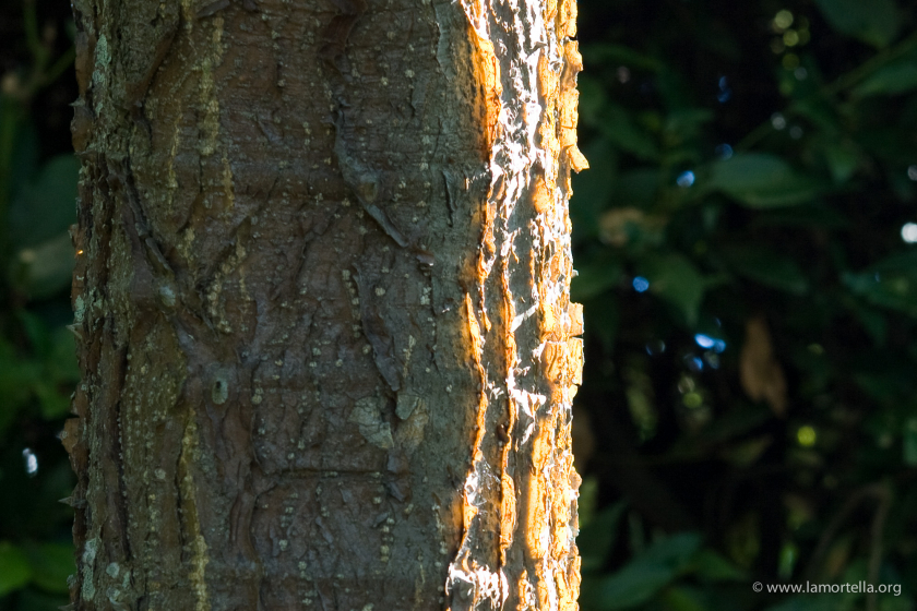 Este árbol puede sobrevivir, en nuestras latitudes, solo en el invernadero. Sin embargo, se ha convertido en una de las maravillas del jardín, ya que se ha plantado cuidadosamente contra la pared de la colina, de modo que incluso durante el invierno puede absorber el calor solar almacenado por la roca.