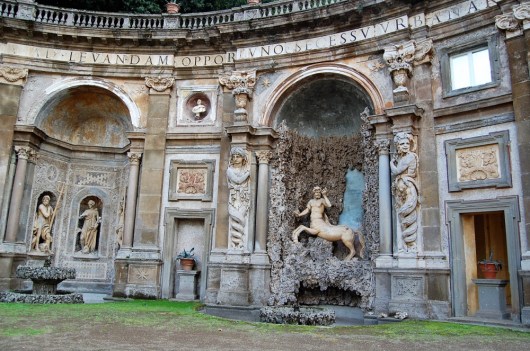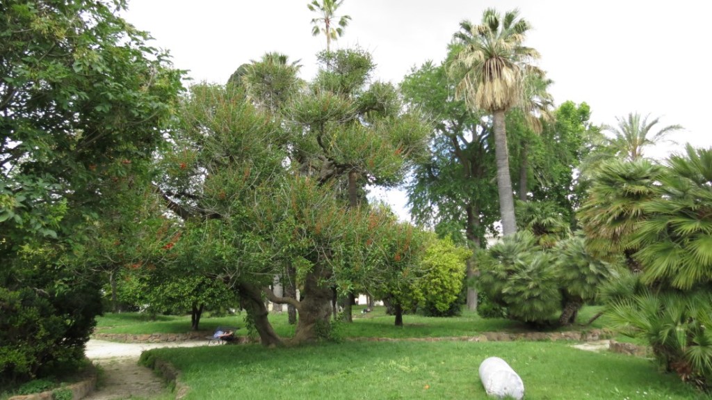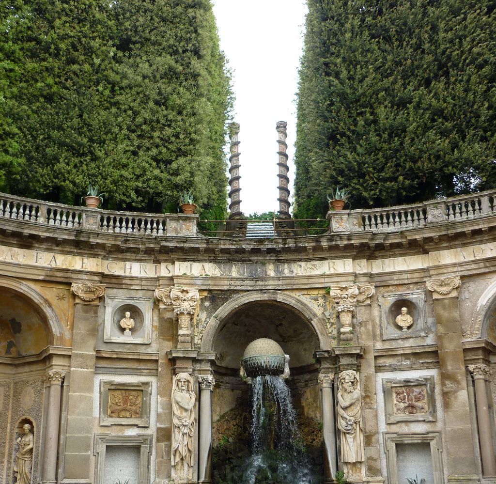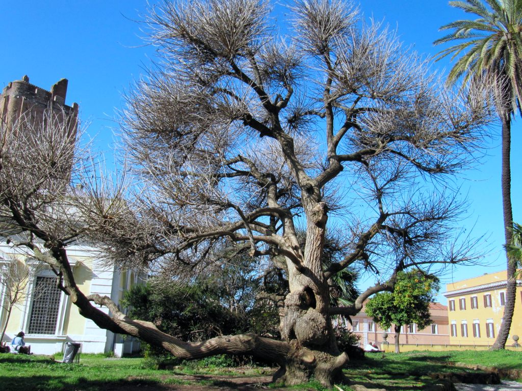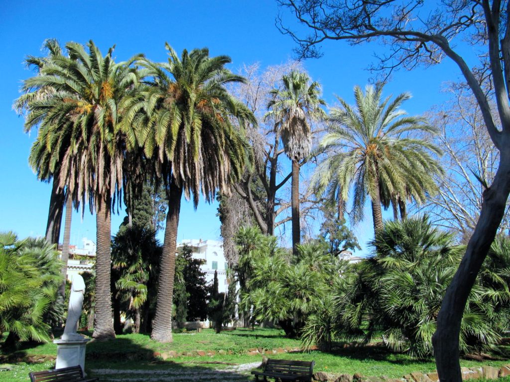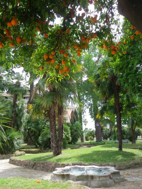 El jardín está adornado con árboles, palmeras y es un oasis de paz por el ruido del tráfico y las preocupaciones de la vida cotidiana. Esta colina llamada Monte Magnanapoli probablemente debió su nombre a la presencia de edificios termales de cierto Paolo, tal vez «balnea Pauli», o a la presencia de fortificaciones de la Colonna, que era de Nápoles, se jactó el título «Magnus Neapolis Conestabilis «. Sin embargo, en esta zona montañosa, en ese momento, el aire era realmente puro, y por esta razón, el duque Ippolito d’Este decidió construir su residencia aquí, pero murió antes de que se completara.