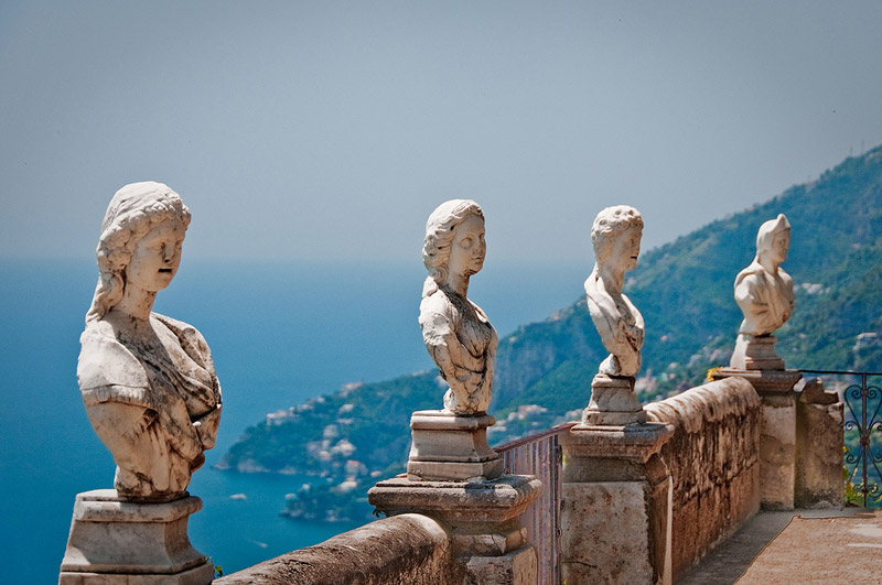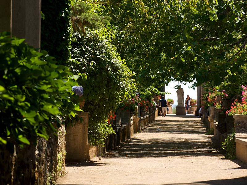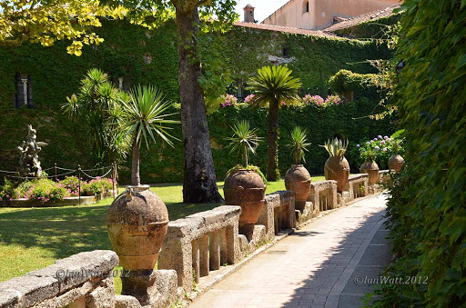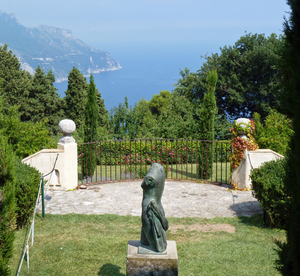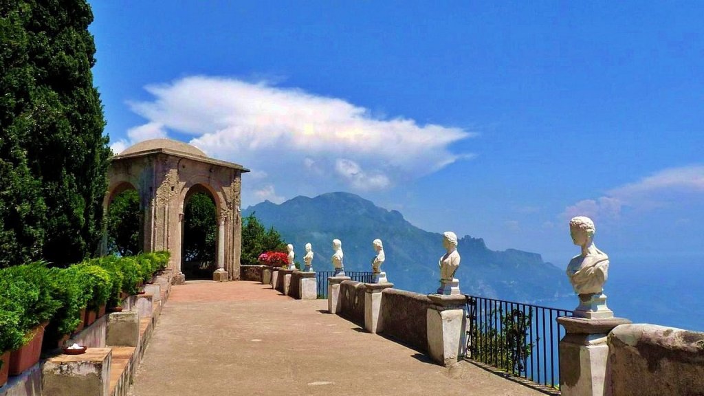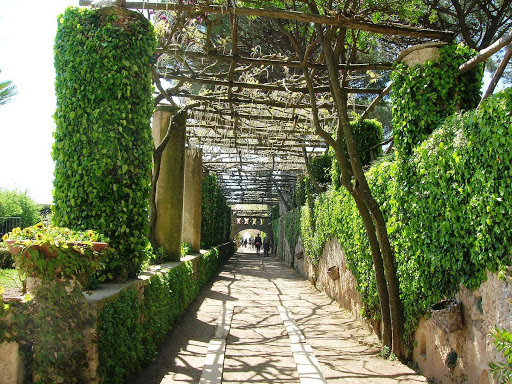 Villa Cimbrone es una antigua granja en Ravello, en la costa de Amalfi, con vistas al Golfo de Salerno que el político inglés Edward Beckett, 5th Baron Grimthorpe transformó en un palacio fortificado a principios del siglo XX , quería renovar toda la finca y devolverla a su antigua gloria. Fue un proyecto de pasión para él y una forma de curar su depresión por el fallecimiento de su amada esposa.. Vita Sackville-West contribuyó al diseño actual del jardín, que es de estilo inglés pero con vistas a la costa de Amalfi. El jardín se presenta a lo largo del acantilado e incluye un templo de Baco y estatuas romanas. La villa ahora es un hotel de lujo.