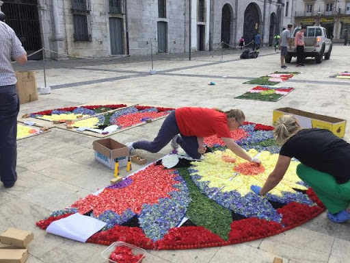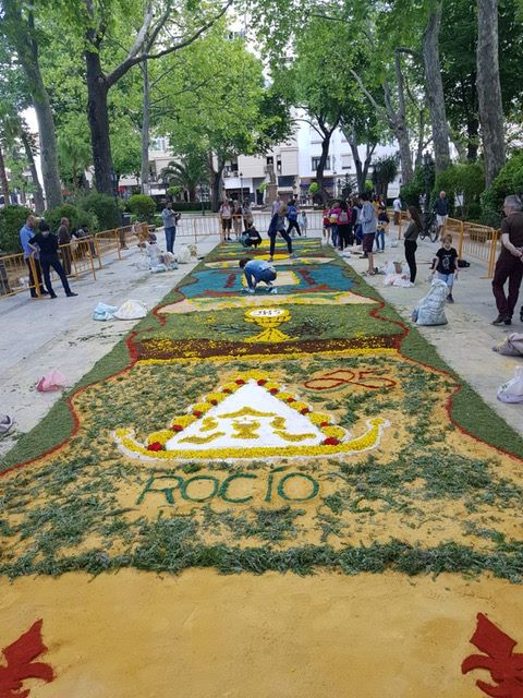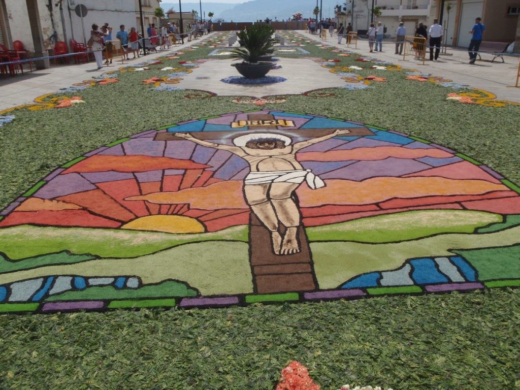 Son decenas de personas las que trabajan duramente toda la noche para que con las primeras luces del Corpus, y siempre antes del comienzo de la misa, las alfombras estén listas. A mediodía, el pueblo luce, bellísimo, con sus calles tapizadas de mil colores.