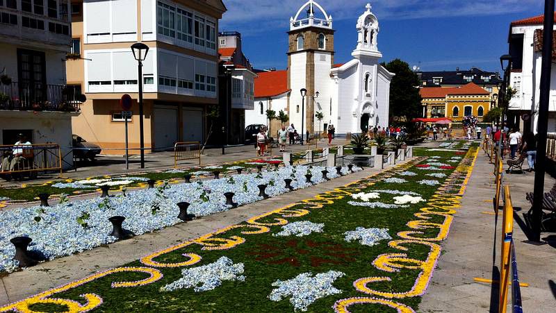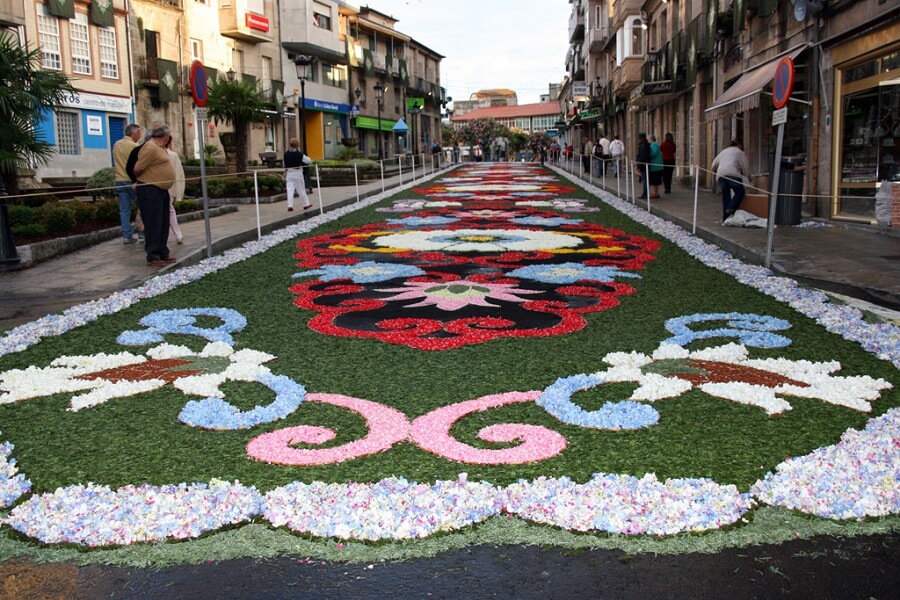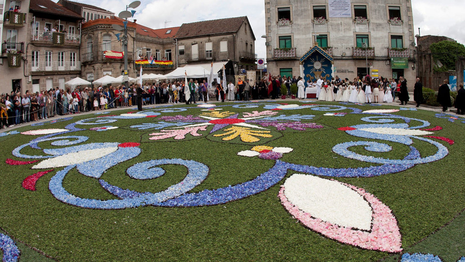 La fiesta del Corpus Christi es una de las celebraciones más destacadas de toda la comarca que le ha valido a Ponteareas ser conocida como la Villa del Corpus. Sus alfombras de flores son las más importantes de Galicia y gozan de gran fama en el resto de España. Por cada composición hace falta por lo menos el trabajo de un centenar de personas. , se cubren con pétalos 6.000 metros de calles y avenidas. Los artista tienen que esperar al último momento para recolectar flores frescas y dibujar con ellas sobre la calzada. Lo más complicado de esta tarea, según los alfombristas, es el deshoje. No menos importante resulta conocer perfectamente el lugar hacia donde mirará el dibujo, que depende mucho de la perspectiva de quienes vayan a contemplarlo.