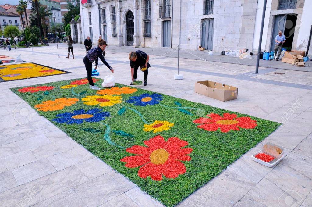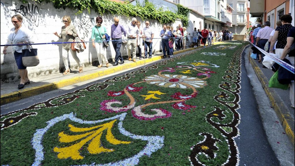 La tradición en la elaboración de alfombras florales para la procesión del Corpus pervive en Ponteareas durante más de 150 años. Largas horas de trabajo de hombres y mujeres, año tras año, en los portales de esa localidad, con hojas y flores para que todo esté listo la noche previa del Corpus Christi. La fiesta del Corpus se celebra el 11 de junio, y la elaboración de las típicas alfombras tenía lugar en la noche del día anterior