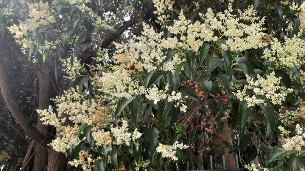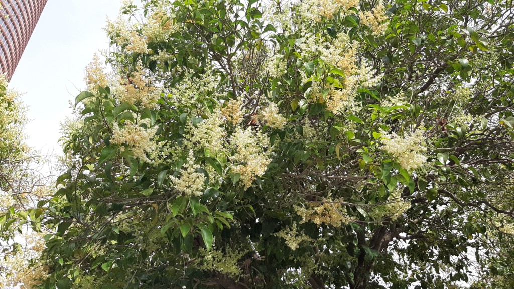 Árbol de la familia de las Oleaceae, ahora en flor en Sevilla, es originario de China y Japón con polinización anemófila, aunque el polen es muy pesado y se dispersa poco.