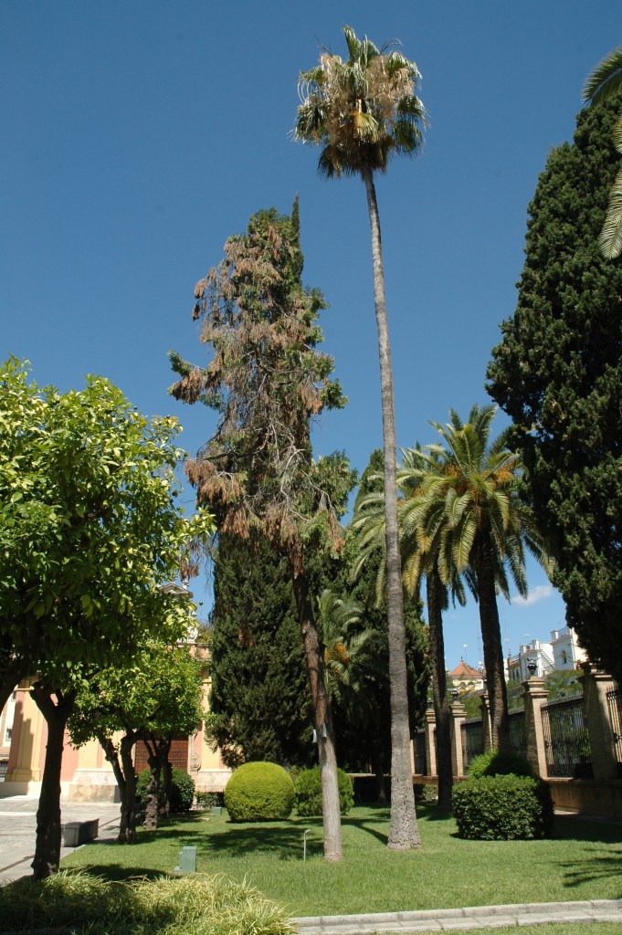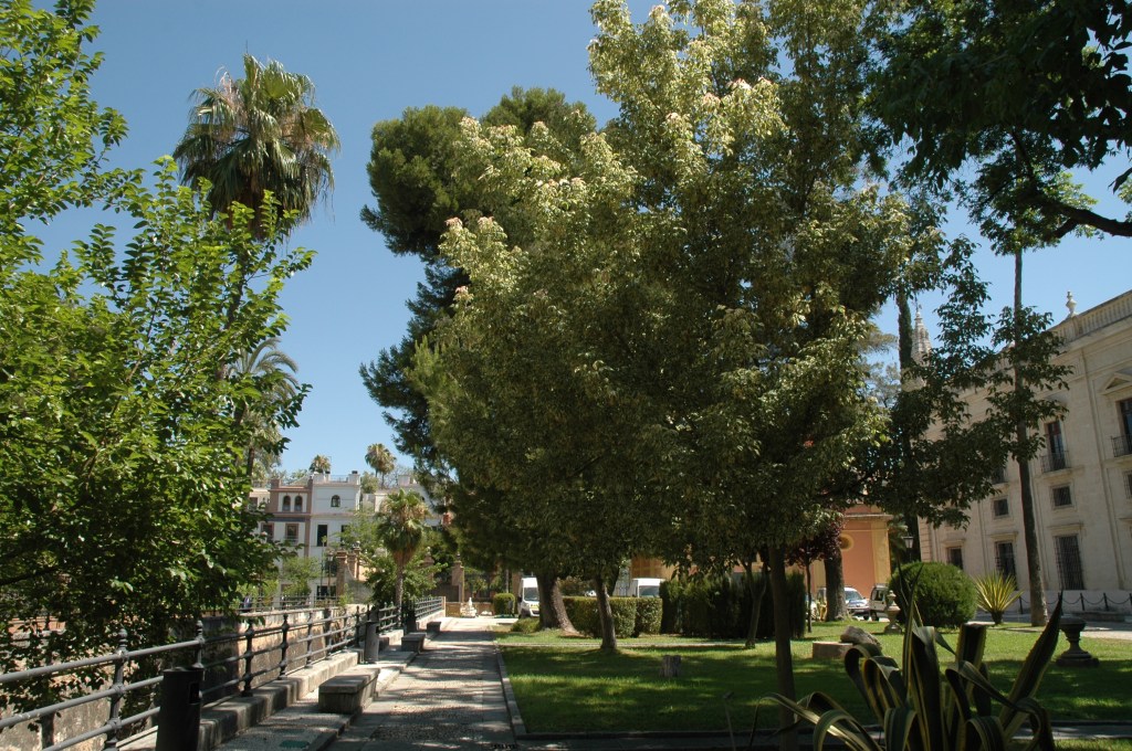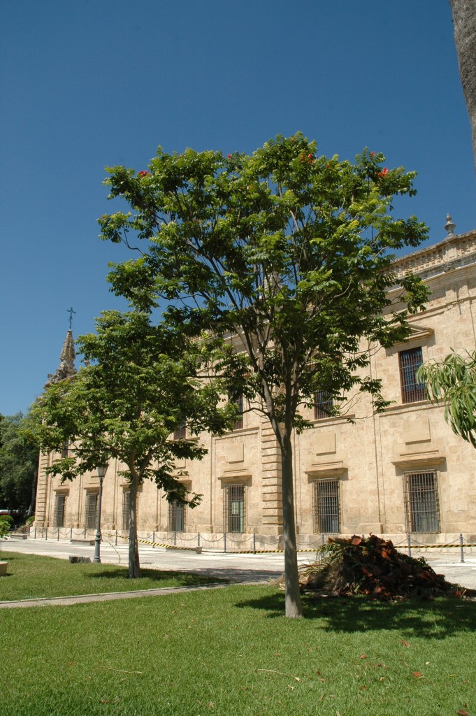 Desde principios de marzo cerrado al público como consecuencia del coronavirus he conseguido introducirme en los jardines del Rectorado de la Universidad ( antigua Fabrica de Tabacos de Sevilla ) ya que tenía interés en sacar una foto a la Jacaranda de flores blancas que se trasplanto el año pasado en este recinto.