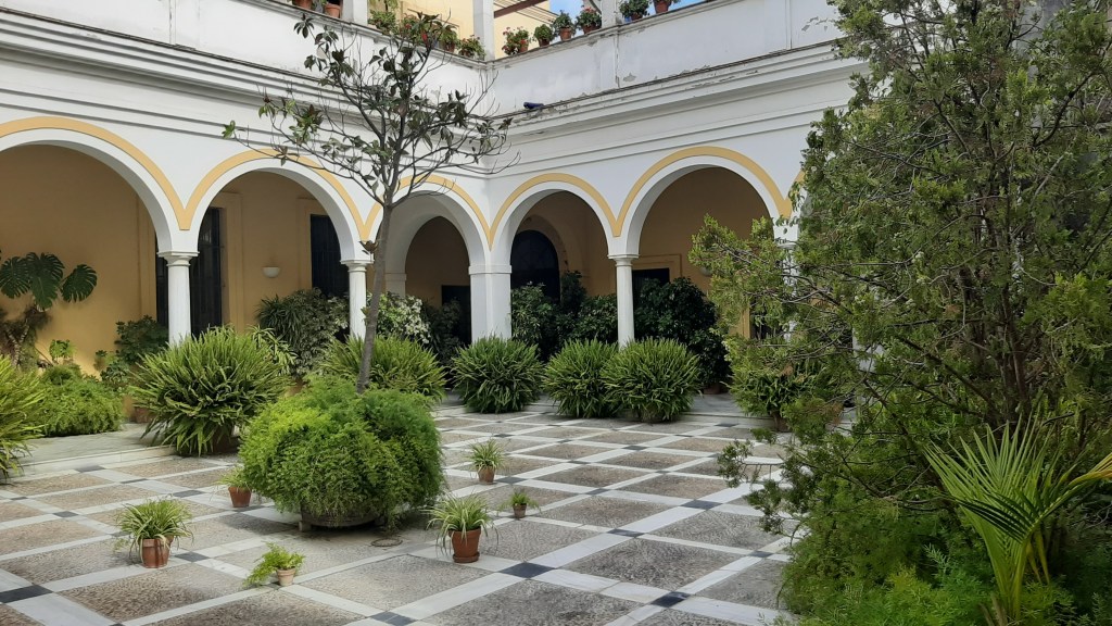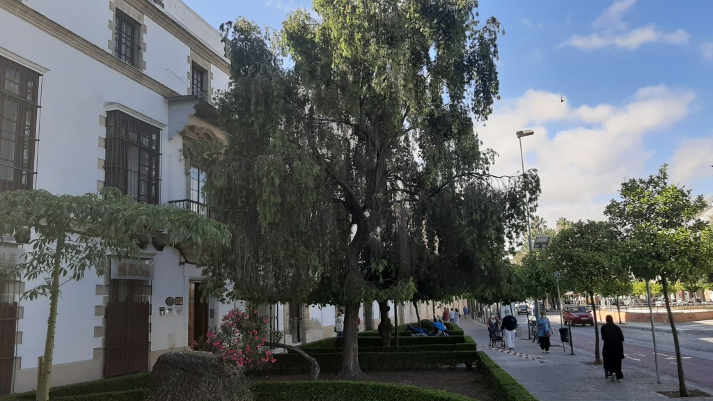 Sigo hasta la Plaza del Arenal, la que ha marcado desde muchos años en centro de Jerez, en el centro de la plaza una estatua ecuestre del General Primo de Ribera ,desde allí me dirijo al Ayuntamiento donde me sorprenden unas esbeltas Magnolia grandiflora.-Magnolio que no recordaba de visitas anteriores, siguiendo por calle Consistorio me introduzco en uno de los patios de la Casa Grande bien surtido de vegetación principalmente de Nephrolepis exaltata.-Helechos