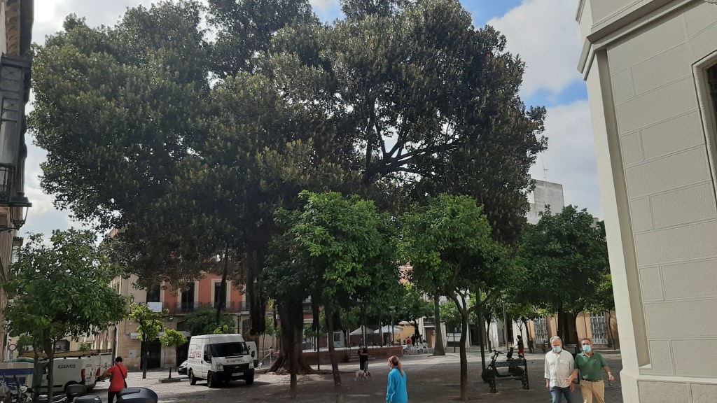 Un solo árbol llena el espacio de la Plaza,