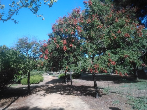 Brachychiton acerifolia.-Arbol de la llama o del de Fuego.– En uno de mis viajes a Tenerife hace ya algunos años, cuando Aurea era la Directora de los Parques y Jardines de aquella ciudad me facilito semillas del Brachychiton acerifolia que ellos tenían plantado en varias calles.