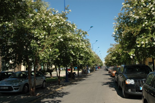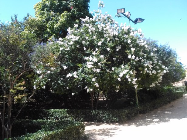 Lagerstroemia indica.-Júpiter Los más antiguos en los Jardines de la Lonja 1924 y en el barrio del Fontanal, callé Jabugo 1970.