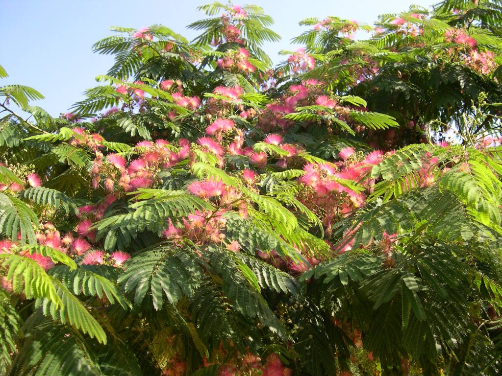 Albizia julibrisin.-Arbol de la seda.-Las primeras plantaciones se realizaron en la Calle José Saramago,1985,luego prosiguieron las plantadas en la Avda. del Poeta Manuel Benítez Carrasco 1998-2000 y últimamente en calle Parlamento de Andalucía en 2010.