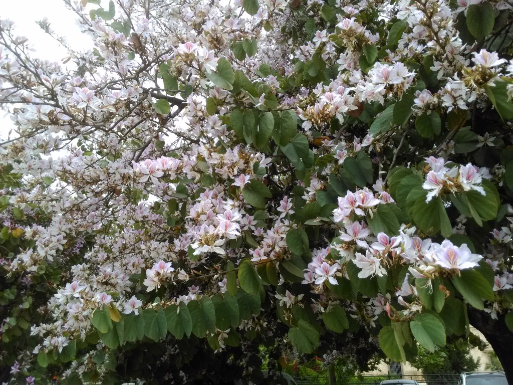 Bahuinia variegata Pata de vaca o Arbol de las Orquídeas, aparecen en plantaciones en la vía publica en la Isla de la Cartuja Bahuinia variegata y Bahuinia purpurea 1990 2002- En 2004 en la Glorieta de San Diego la Bahuinia variegata y últimamente en la calle Almirante Lobo 2015.-16. Las hay plantadas en Avda. República Argentina 2000 y en los Jardines del Valle 2019.
